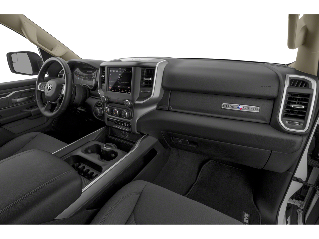 The Big Horn/Lone Star Level 2 Equipment Group takes this Ram 1500 to the next level, adding features like a spray-in bedliner, adjustable cargo tie-down hooks, and a deployable bed step for easy access. The 400W inverter and 115V auxiliary power outlets make it easy to power your tools or electronics on the job site or during your next adventure.