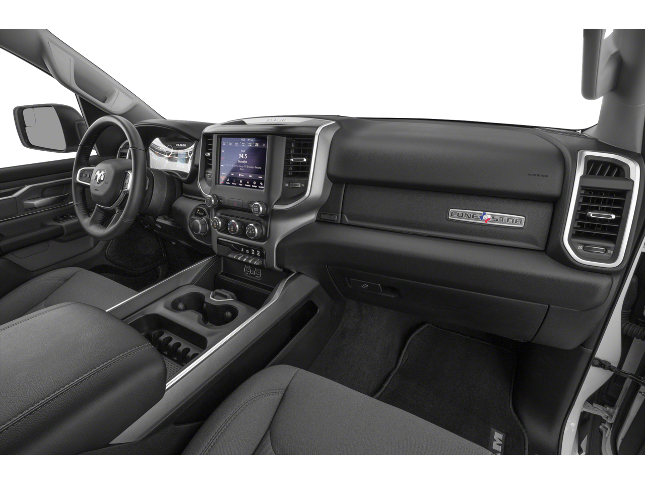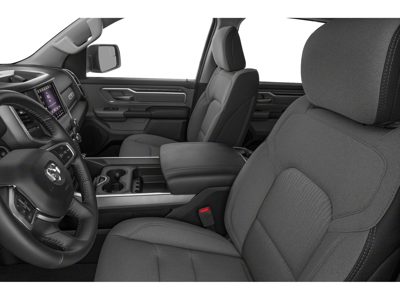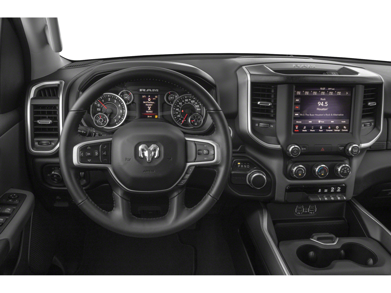 Slip behind the wheel and you'll be greeted by a spacious and comfortable interior, with premium features like a leather-wrapped steering wheel, power door mirrors, and a backup camera to make every drive easier. The rugged exterior, with its bold Big Horn styling and chrome accents, commands attention on the road.