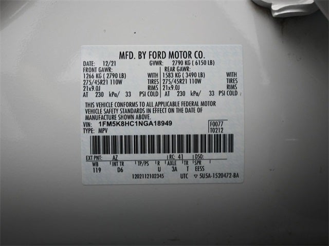 - Front Tire Size: P275/45WR21