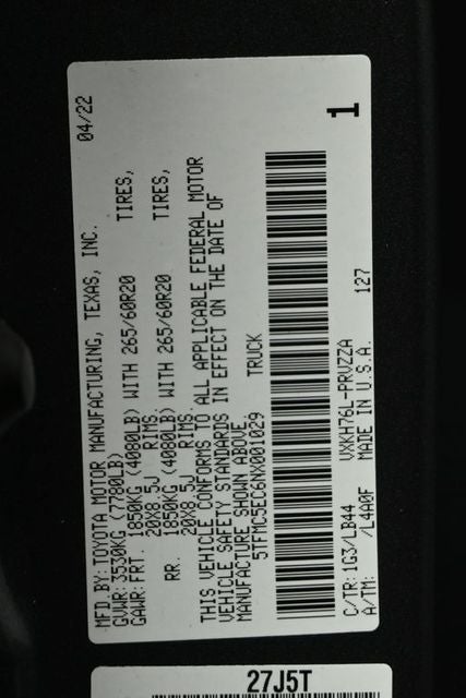 - Vehicle Name: Toyota Tundra 4WD